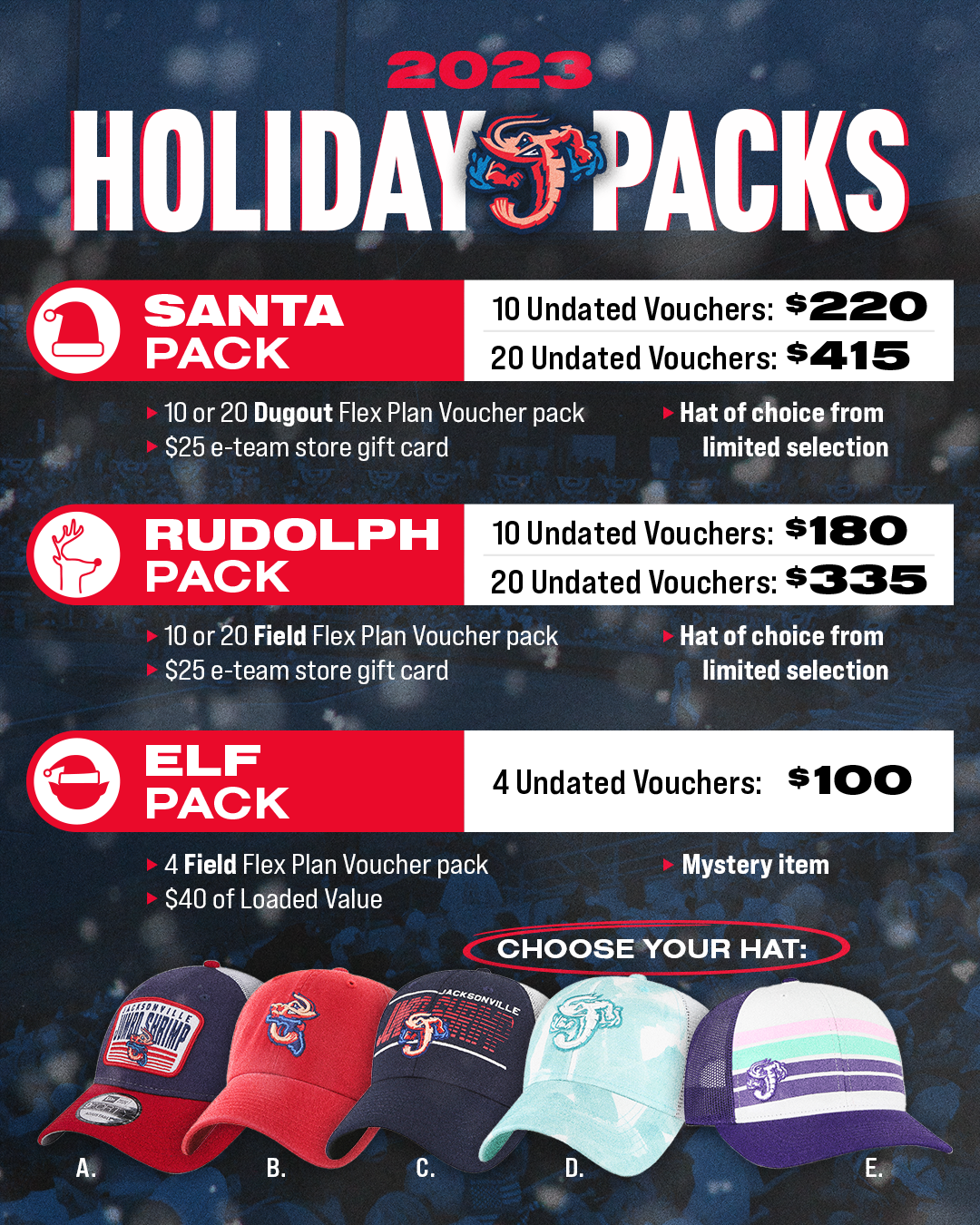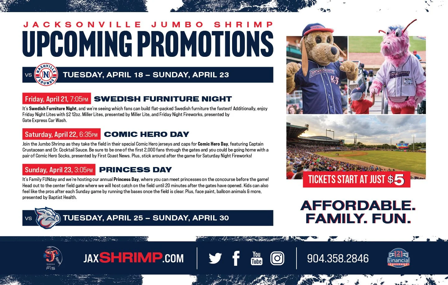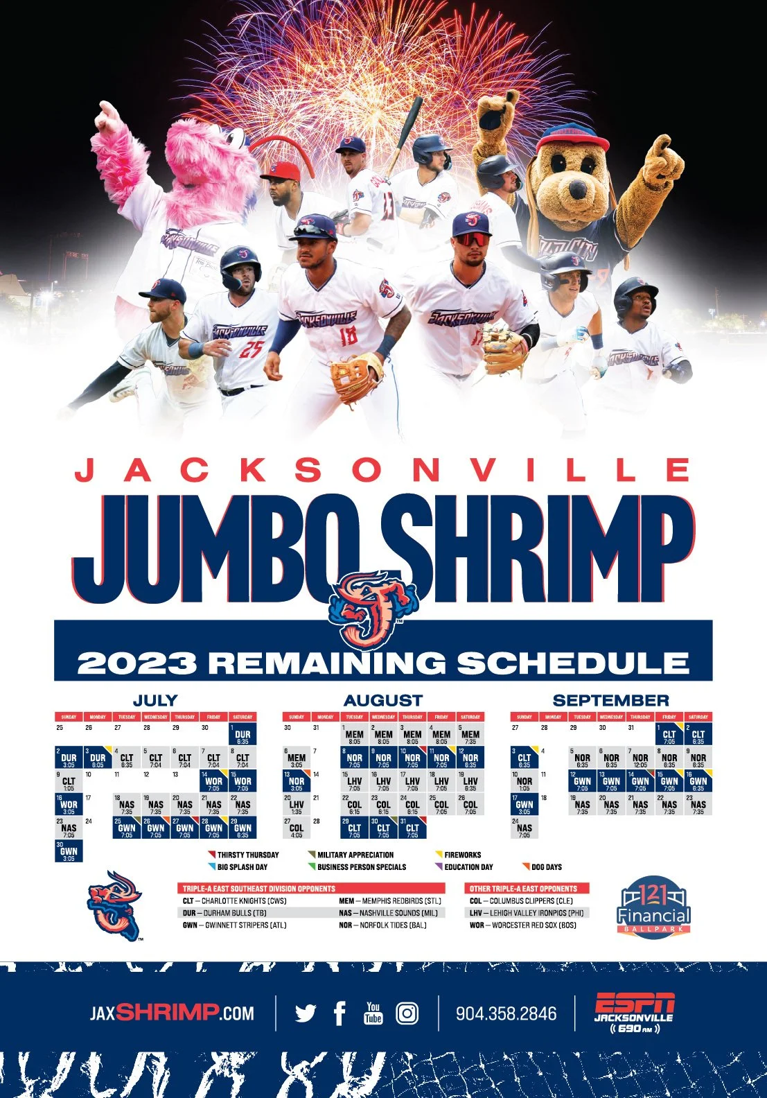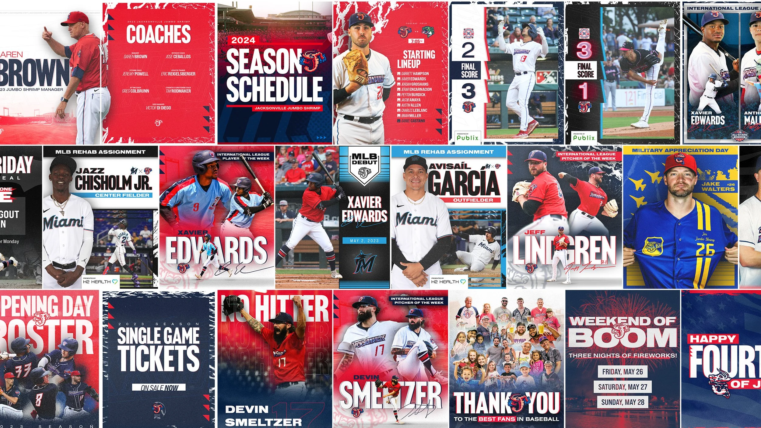 2023 Jumbo Shrimp Below are some examples of my work from the 2023 Jacksonville Jumbo Shrimp Season. Social Media Graphics Video Board Motion Graphics Promotions & Giveaway Items Print