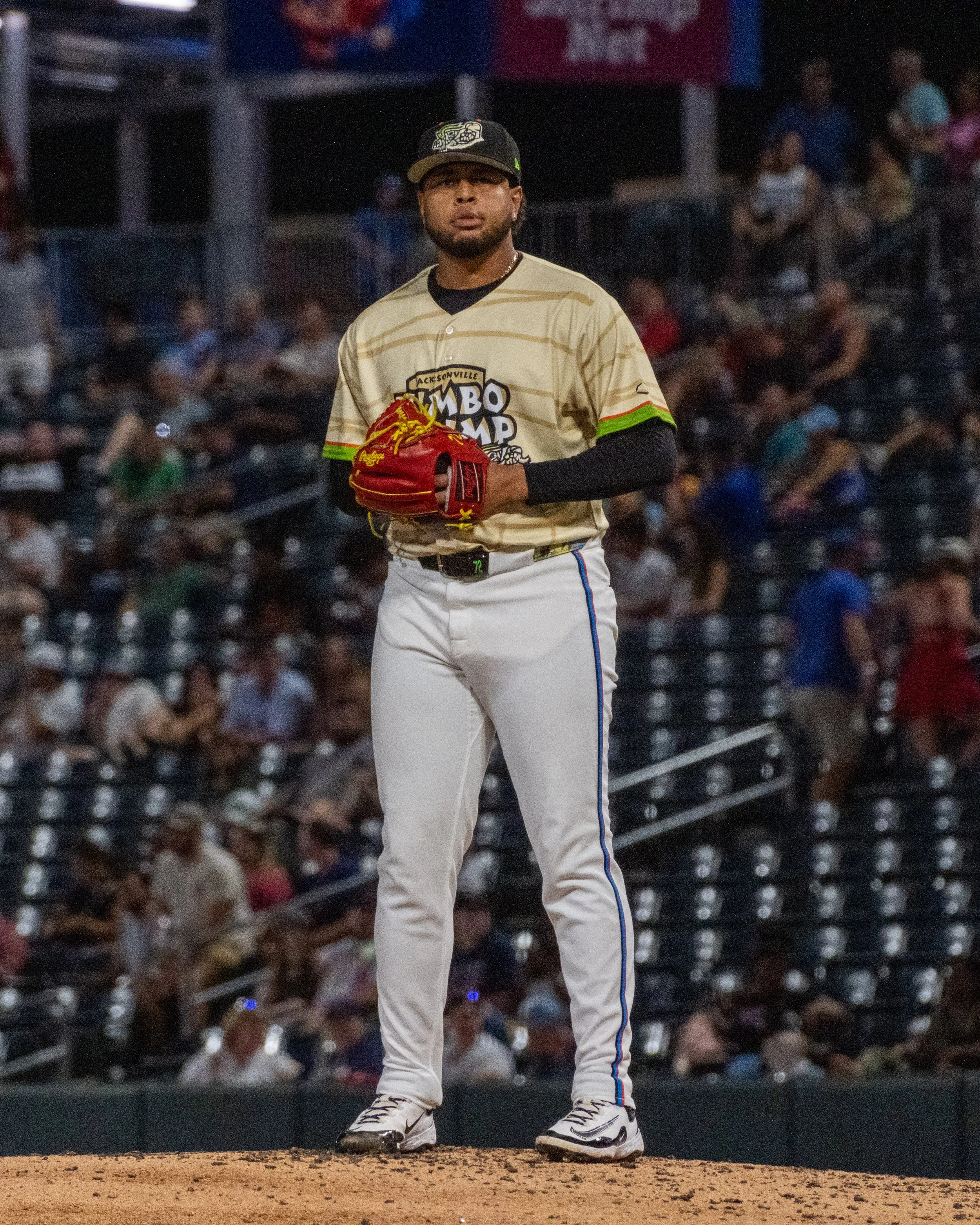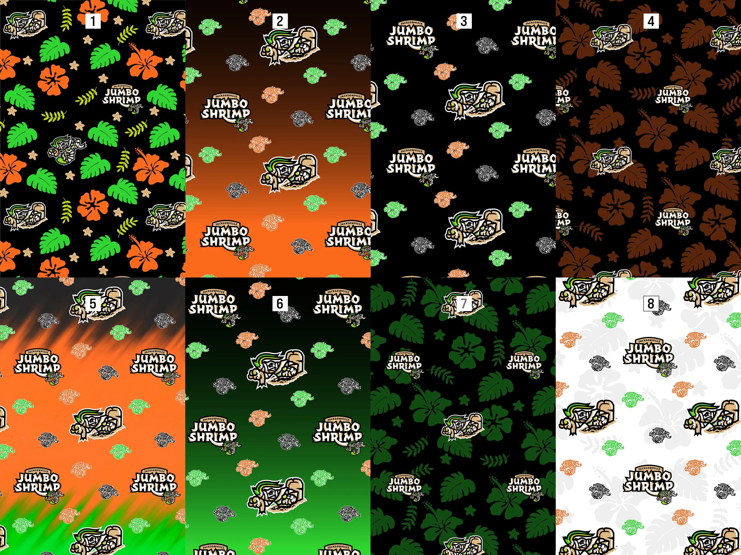 On July 12 and 13, 2025, the Jumbo Shrimp celebrated Halloween in July with new Mummy Shrimp uniforms, designed by Brandiose. For these two games, I enhanced the fan experience with custom Mummy Shrimp video board animations, Halloween video board player card designs with Frankenstein player headshot edits, social media templates, and a button-up Hawaiian shirt giveaway.